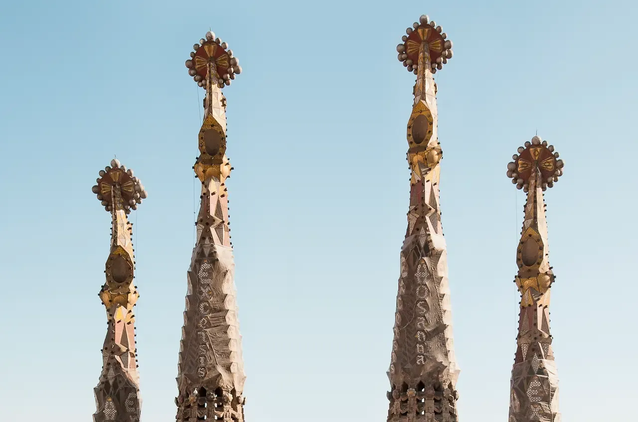 Dos pináculos de campanarios. [<Atmosfera Gaudí. Fotografies de Joaquim Gomis> (1996): p. 48.]