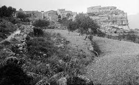 Vista de la ermita de Sant Joan d’Horta c. 1917, con una perspectiva ladeada respecto al cuadro.